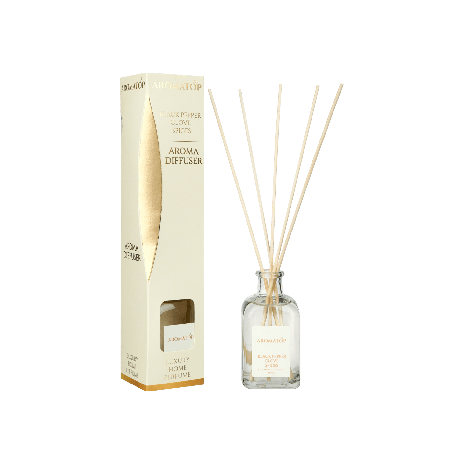 АромадифузориAromatop Аромадифузор Чорний перець-Гвоздика Спеції, 100млАромат BLACK PEPPER CLOVES SPICES LUXURY HOME PERFUME наповнює простір чарівним поєднанням нот із незвичайним свіжо-пряним ароматом. Він створює атмосферу тепла, затишку та розкішної загадковості. Його аромат асоціюється з насиченими східними спеціями: чорним перцем, гвоздикою та іншими прянощами, що додають глибини та характеру простору. Цей аромадифузор ідеально підходить для аромагурманів – як для дому, так і для офісу, створюючи унікальну атмосферу. Подаруйте собі або близьким атмосферу розкоші та комфорту з цим незвичайним парфумованим аромадифузором