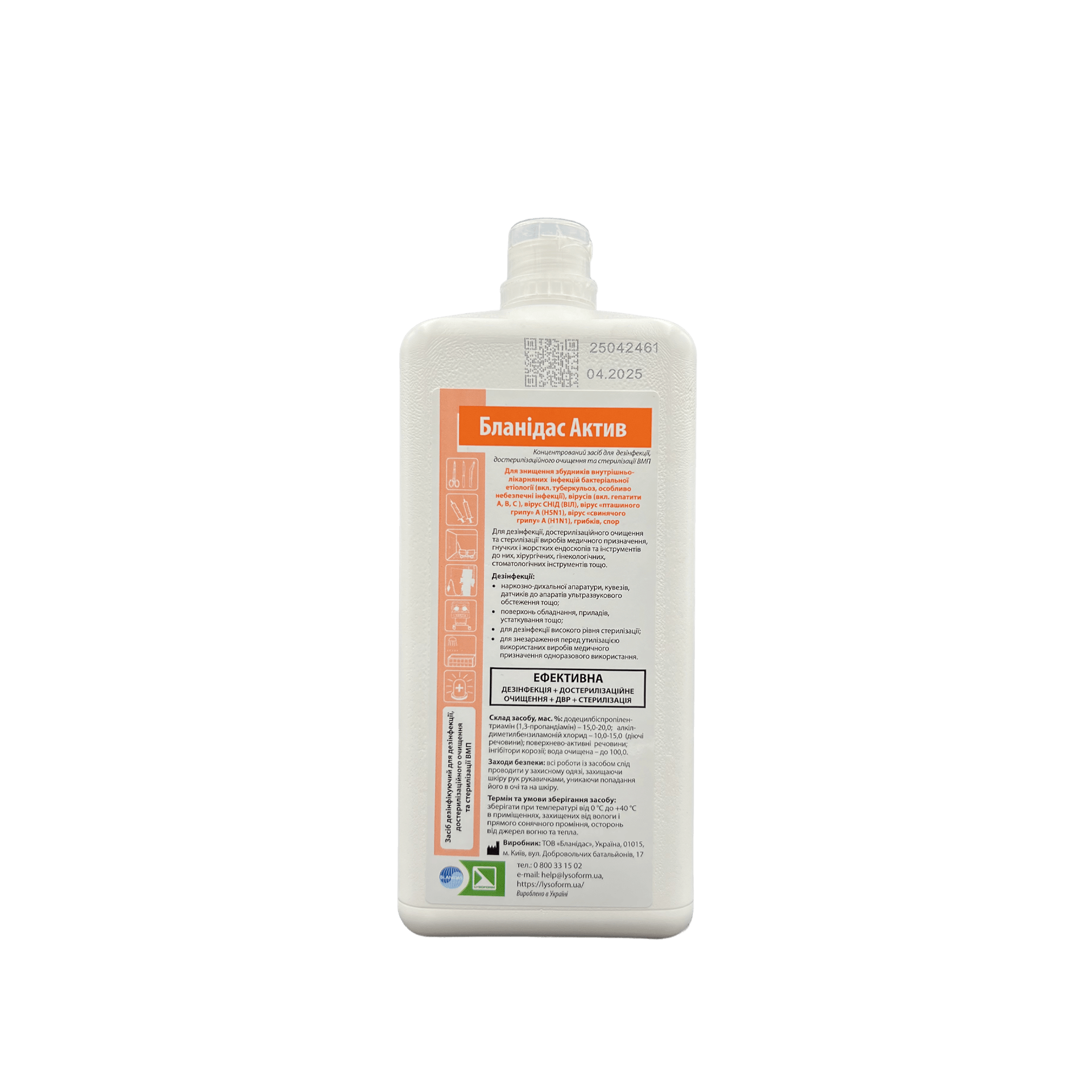 Універсальний безальдегідний нехлорний засіб для знезараження медичних виробів (дезінфекція + достерилізаційне очищення + стерилізація), для поточної, заключної, профілактичної дезінфекції і одночасного миття усіх типів поверхонь, для проведення генеральних прибирань.