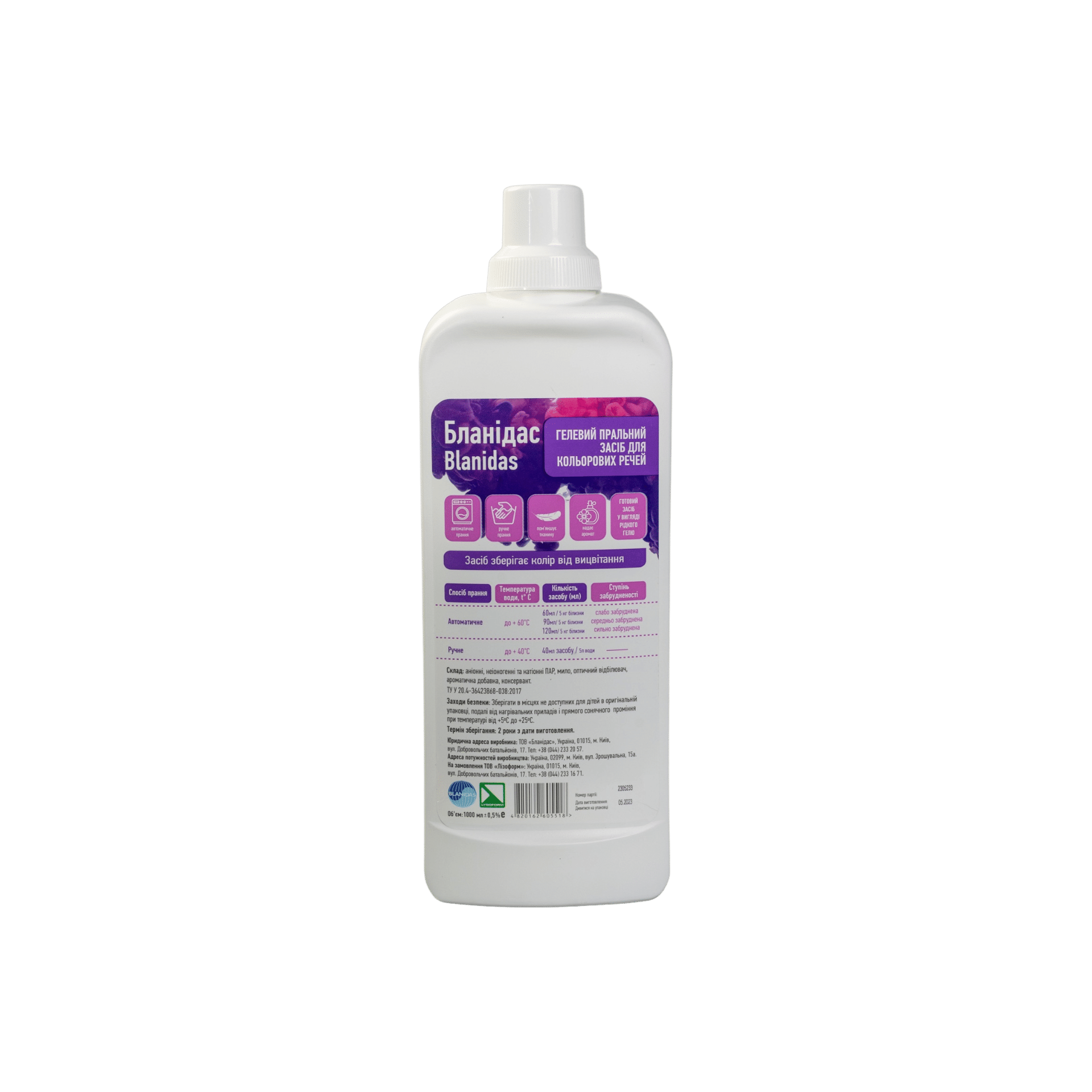 Готовий засіб у вигляді рідкого гелю для прання речей з кольорових або темних тканин.
