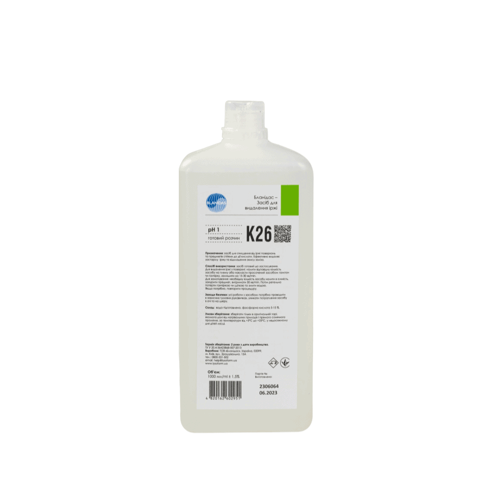 Готовий рідкий засіб для очищення кислотостійких поверхонь, столових приладів, посуду та предметів різного роду від корозії.