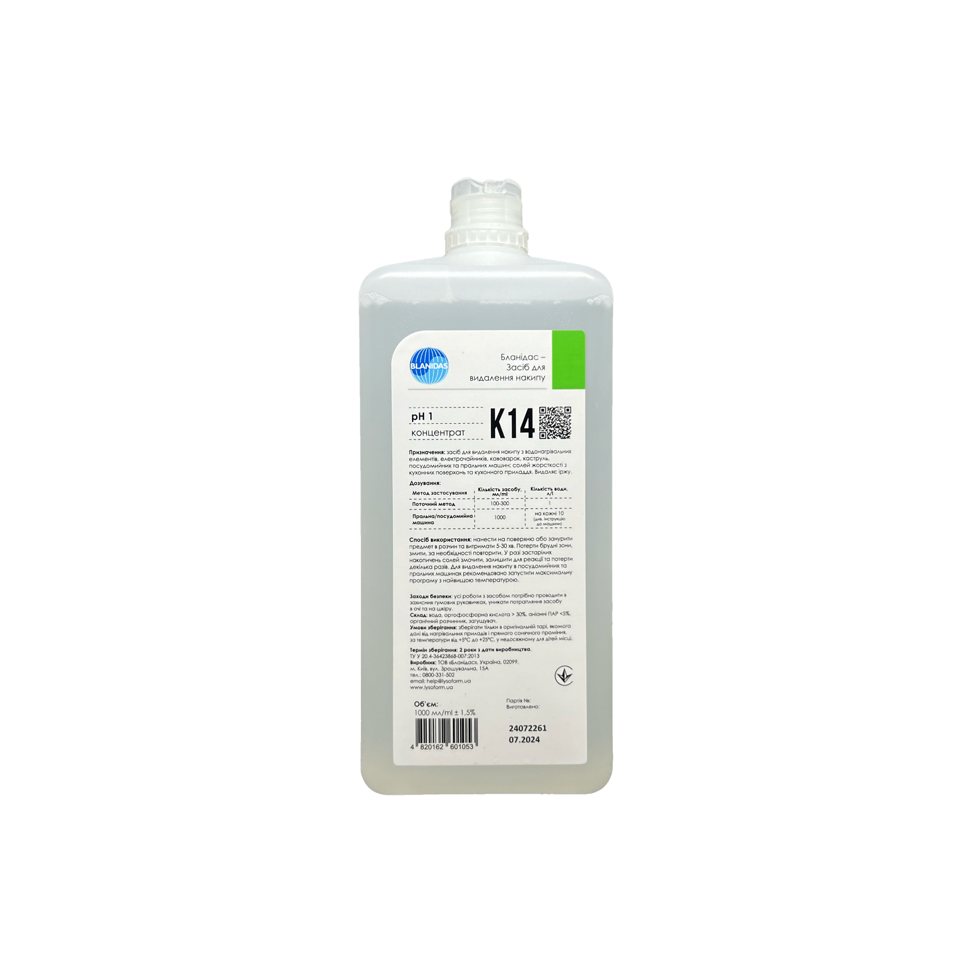 Засіб для видалення накипу з водонагрівальних елементів, електрочайників, кавоварок, каструль, посудомийних та пральних машин.