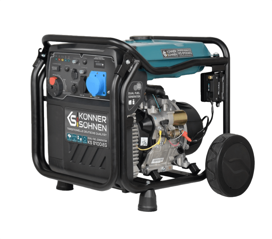 KS 8100iEG від Könner & Söhnen забезпечує номінальну потужність 7,2 кВт (однофазний). У газовому режимі потужність знижується приблизно на 10%. Може працювати як на бензині, так і на зрідженому газі (LPG).