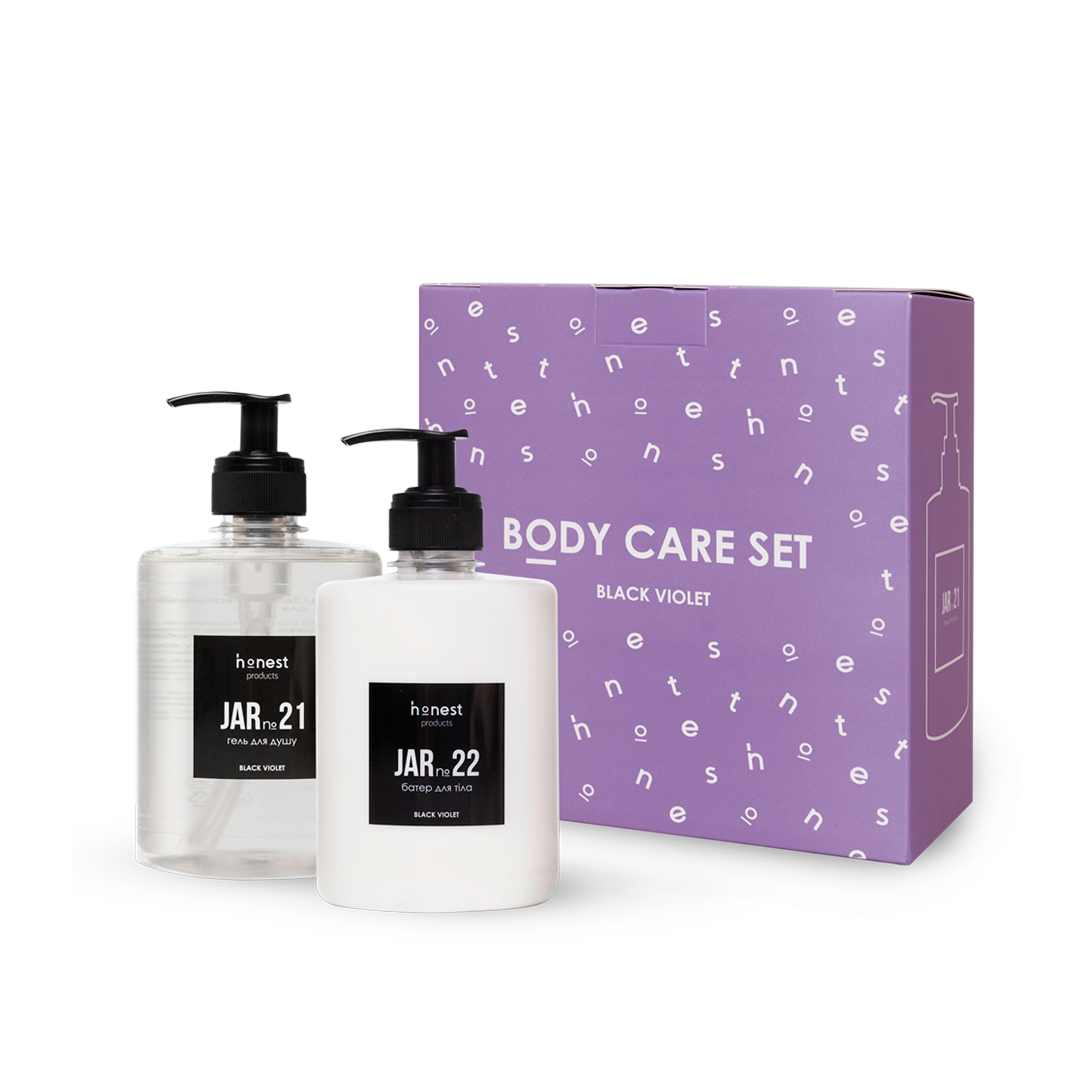 1. Зволожувальний крем-гель для душу JAR №21 black violet від honest products, 500мл — зволожувальний крем-гель для душу на основі мигдалевого молочка. Він делікатно очищує шкіру, підтримуючи її природний водний баланс, зволожує і пом’якшує, забезпечуючи м’якість і свіжість.