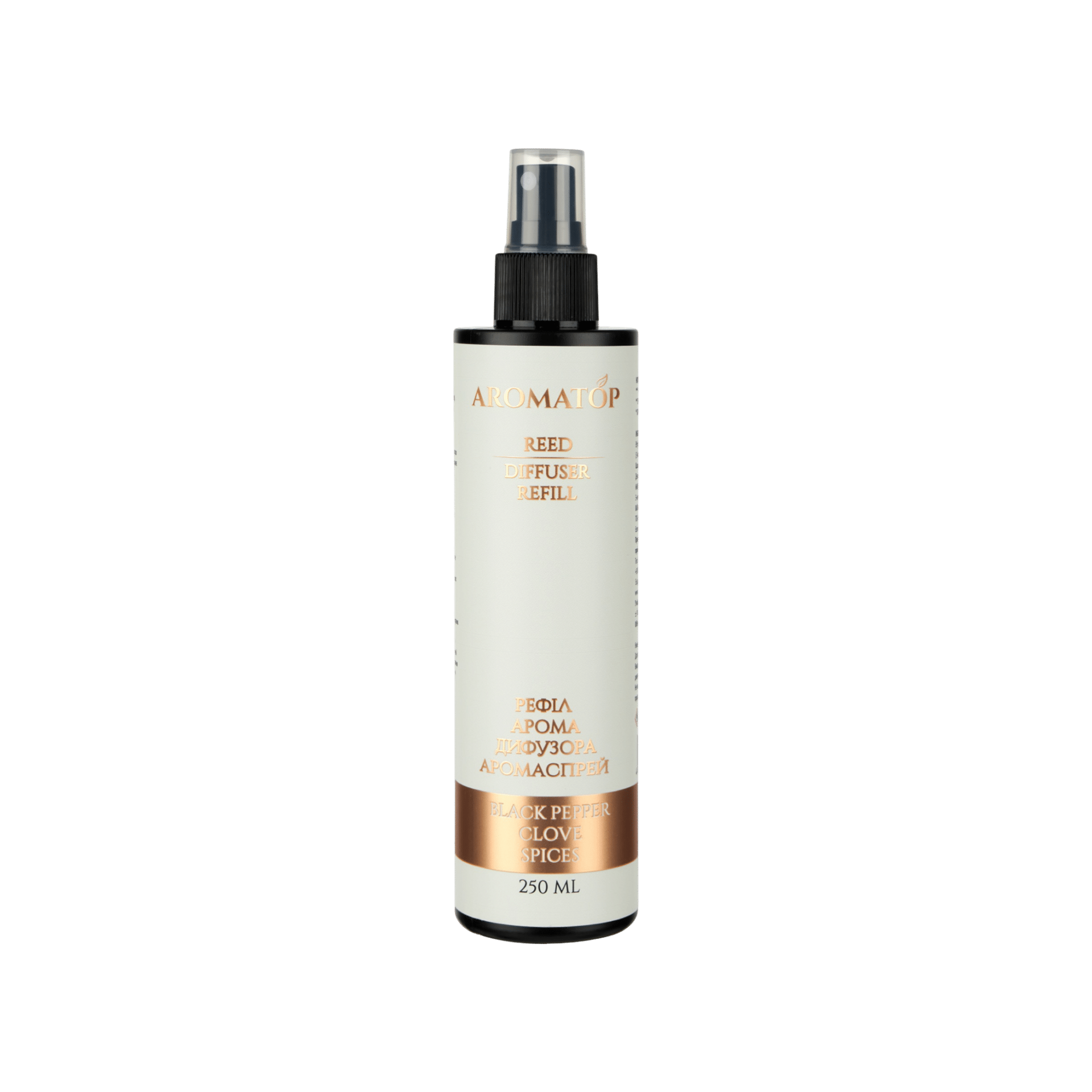 Рефіл для аромадифузора продовжує дію улюбленого аромату, а спрей робить його застосування універсальним. Аромат BLACK PEPPER CLOVES SPICES LUXURY HOME PERFUME наповнює простір чарівним поєднанням нот із незвичайним свіжо-пряним ароматом. Він створює атмосферу тепла, затишку та розкішної загадковості. Його аромат асоціюється з насиченими східними спеціями: чорним перцем, гвоздикою та іншими прянощами, що додають глибини та характеру простору. Цей аромадифузор ідеально підходить для аромагурманів – як для дому, так і для офісу, створюючи унікальну атмосферу. Подаруйте собі або близьким атмосферу розкоші та комфорту з цим незвичайним парфумованим аромадифузором