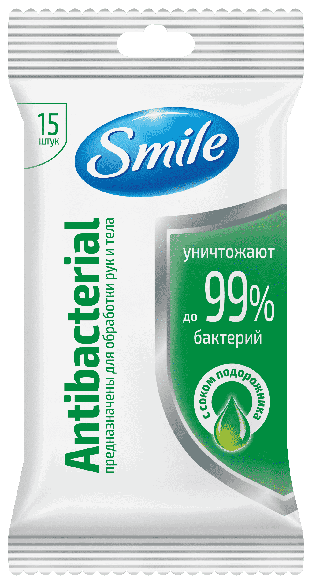 SMILE Серветка волога Antibacterial з соком подорожника 15шт.