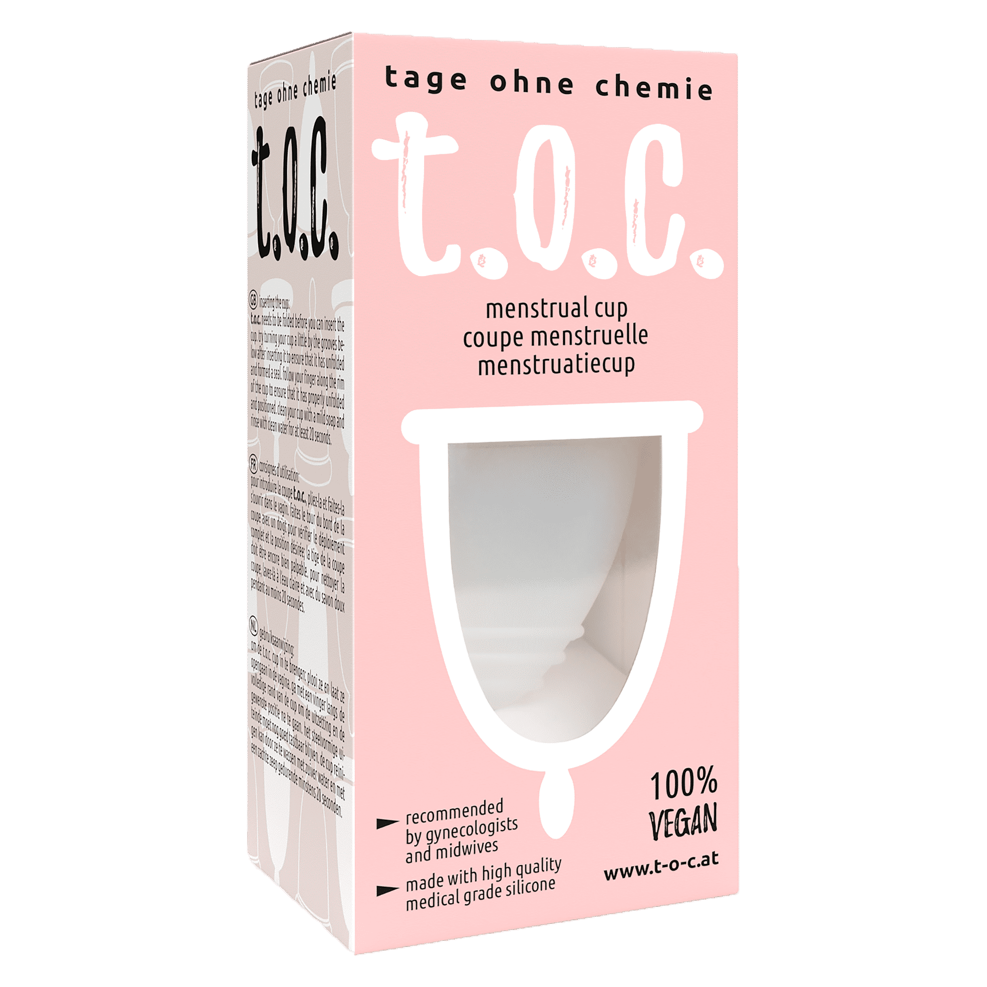 По этой причине менструальная чаша t.o.c. – не содержит латекса, пластификаторов, химикатов, белков, фталатов, алкилфенола, ПВХ и BPA. Она абсолютно безопасна в использовании и защищает вас на протяжении всего периода.