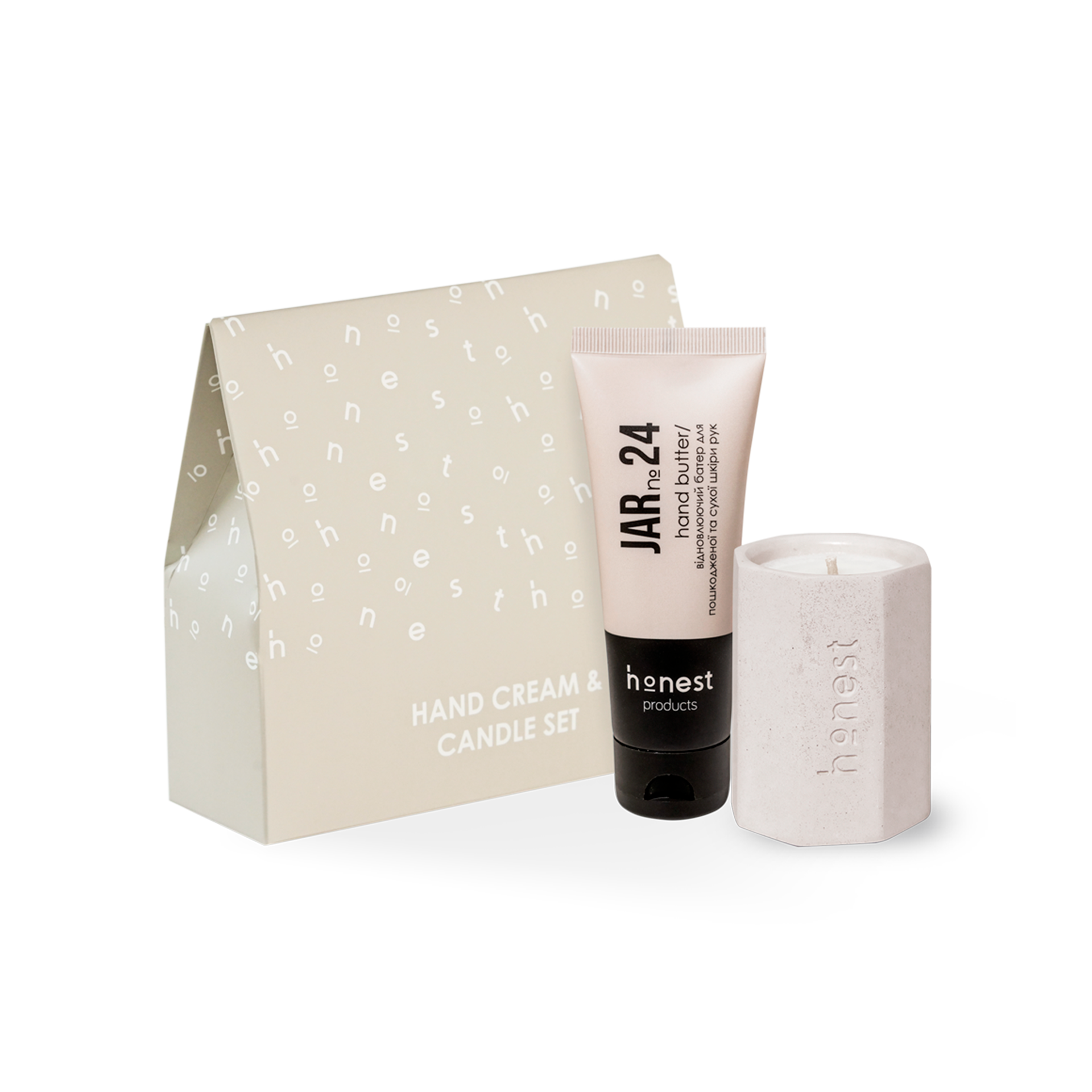 Свечки Подарочный набор баттер для рук и свечка Подарочный набор баттер для рук и свечка Подарочный набор масло для рук и свечка – это готовый способ подарить тепло и заботу! В нем есть все необходимое для маленьких ритуалов ухода и создания праздничной атмосферы: масло для рук и ароматная свеча, которая наполнит дом уютными зимними нотами. Просто добавьте личное пожелание на обратной стороне упаковки — и ваш идеальный подарок готов!   В набор входят: 1. Восстанавливающее масло для поврежденной и сухой кожи рук JAR №24 от honest products, 75 мл – масло на основе кокосового масла смягчает кожу, питает, предотвращает возникновение ощущения стянутости, шелушения и потери влаги, создавая защитную пленку на поверхности кожи. Способствует заживлению микротрещин и восстановлению защитных свойств эпидермиса. Имеет нежный аромат, приятную текстуру и стильный дизайн. 2. Соевая свеча vanilla, 50 г – ароматическая свеча из натурального соевого воска. Свеча наполнит комнату теплым зимним ароматом табака, ванили, белого чая и легкими нотами шафрана. Этот многогранный аромат создает настоящий уют и расслабляет, добавляя в атмосферу тепло и комфорт.   Сделайте этот праздничный сезон особенным, добавив в ваши подарки частичку душевного тепла и внимания! 368.00