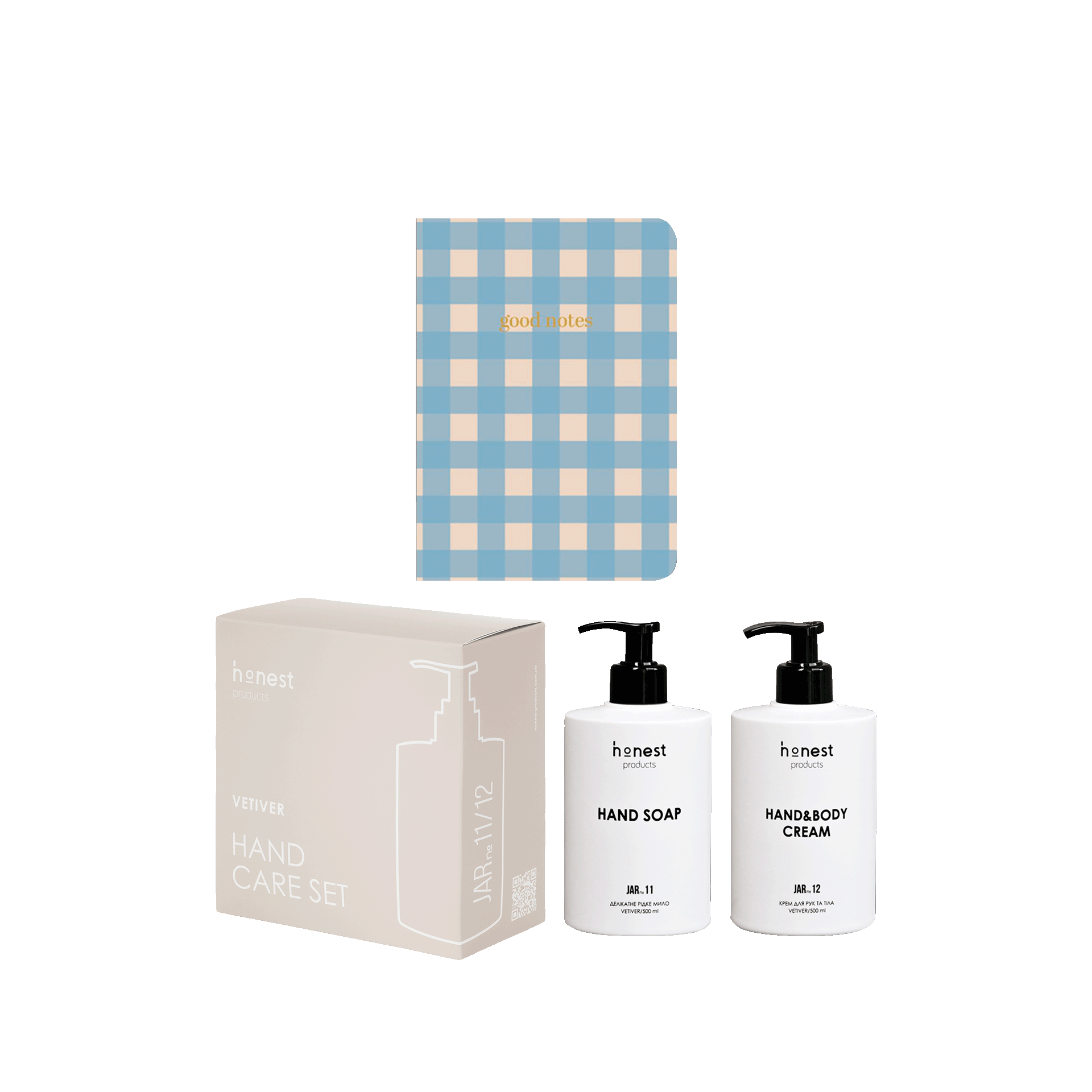 Подарочные наборы Подарочный набор для ухода за кожей рук и блокнот (голубой) Подарочный набор для ухода за кожей рук и блокнот (голубой) Этот набор – это больше, чем просто набор средств для ухода. Это напоминание о важности заботы не только о внешности, но и о внутренней гармонии, моментах спокойствия и наслаждения жизнью «здесь и сейчас». Мы собрали лучшие элементы для создания вашего уникального ритуала заботы, чтобы каждый день был особенным. Идеальный подарок для себя, мамы или подруги, который приносит уют и любовь в ежедневную рутину.   В состав набора входит: Голубой блокнот Good Notes для вдохновения и записей ваших мыслей, мечтаний и важных моментов. Это ваше пространство для размышлений и планов, где можно найти спокойствие и порядок в своих мыслях. Подарочный набор мыло и крем для рук с ароматом ветивера, который деликатно очищает и увлажняет кожу, делая ее мягкой и ухоженной. Легкий и теплый аромат ветивера, амбры, кардамона и ванили будет оставаться на коже, создавая атмосферу уюта в течение всего дня.   Почему стоит выбрать этот набор? – Подарок с заботой: он дарит не только средства ухода, но и моменты покоя и тепла. – Комплексный подход: сочетание физического ухода и психологического баланса для вашей гармонии. – Стиль и уникальность: блокнот, мыло и крем для рук в элегантном оформлении, что подчеркнет ваше внимание к каждой детали.   920.00